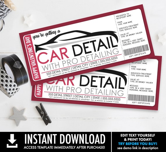Valentine Car Detailing Gift Certificate Car Detail Surprise Etsy